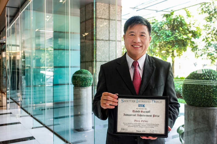 好体育全站登录平台光电董事长暨执行长彭双浪获颁 SID 国际信息显示学会 (Society for Information Display,SID) “David Sarnoff 产业杰出贡献奖”,本届颁奖典礼虽因疫情无法举办,但仍透过精心录制的影片表达个人及公司获主办单位肯定的欣喜之情。